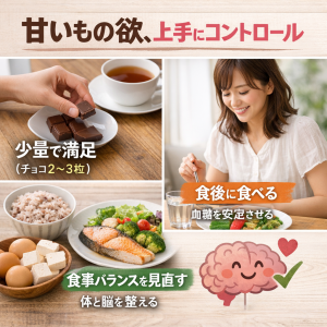甘いもの欲には主に3つの要因があります。